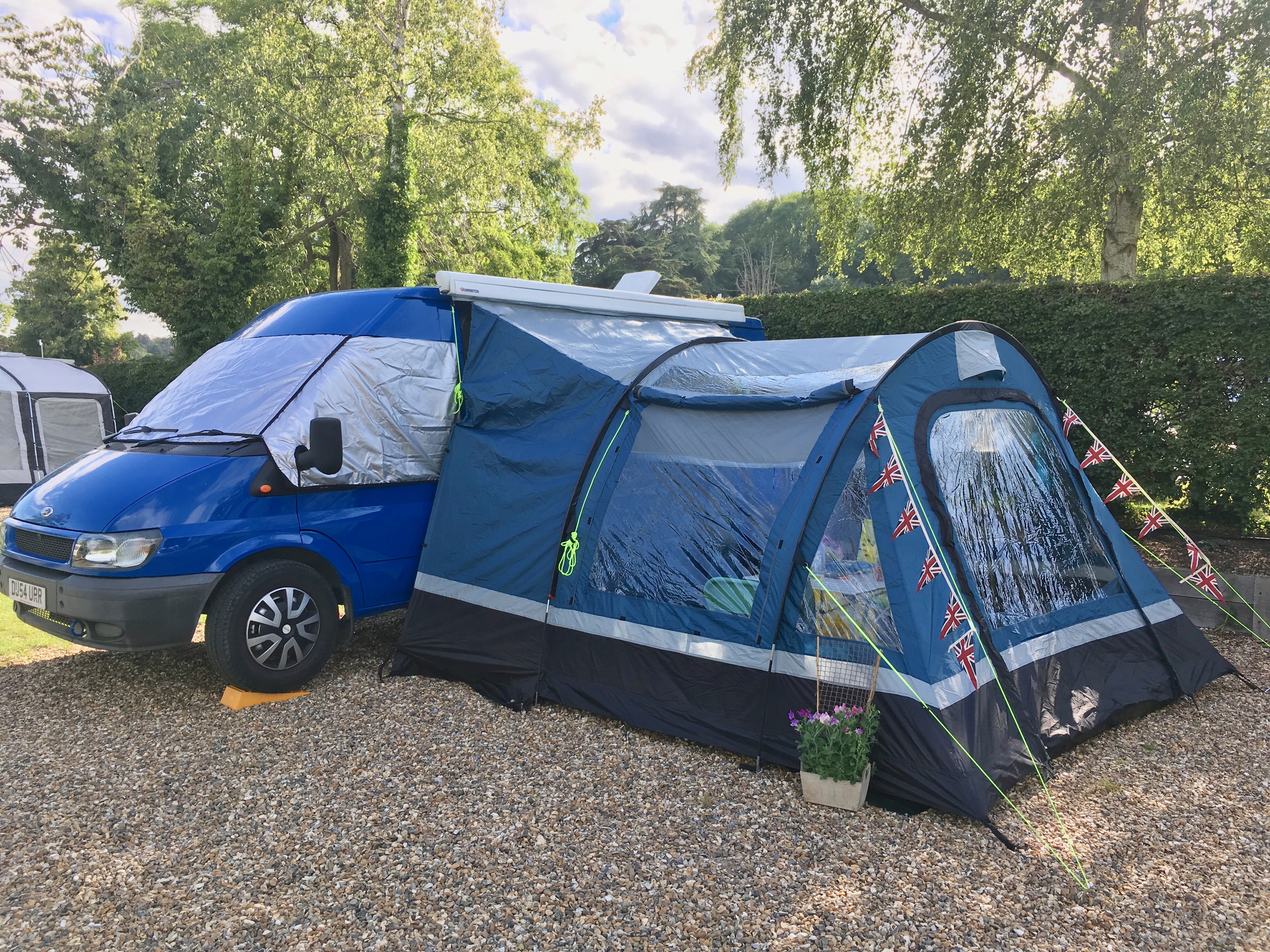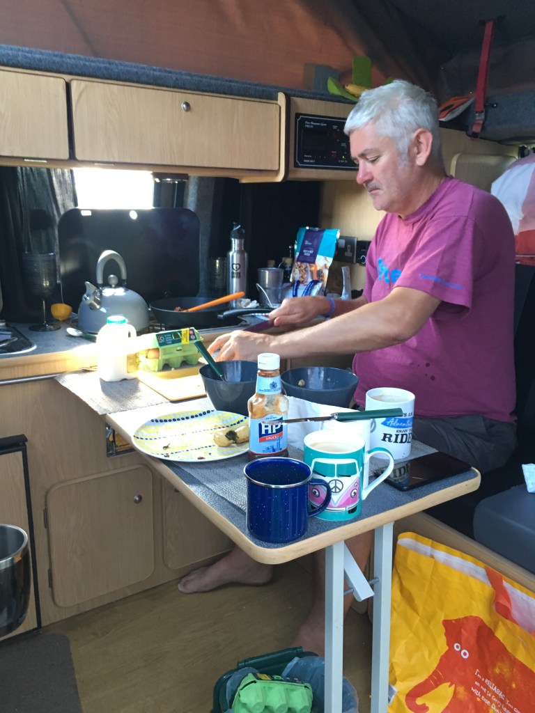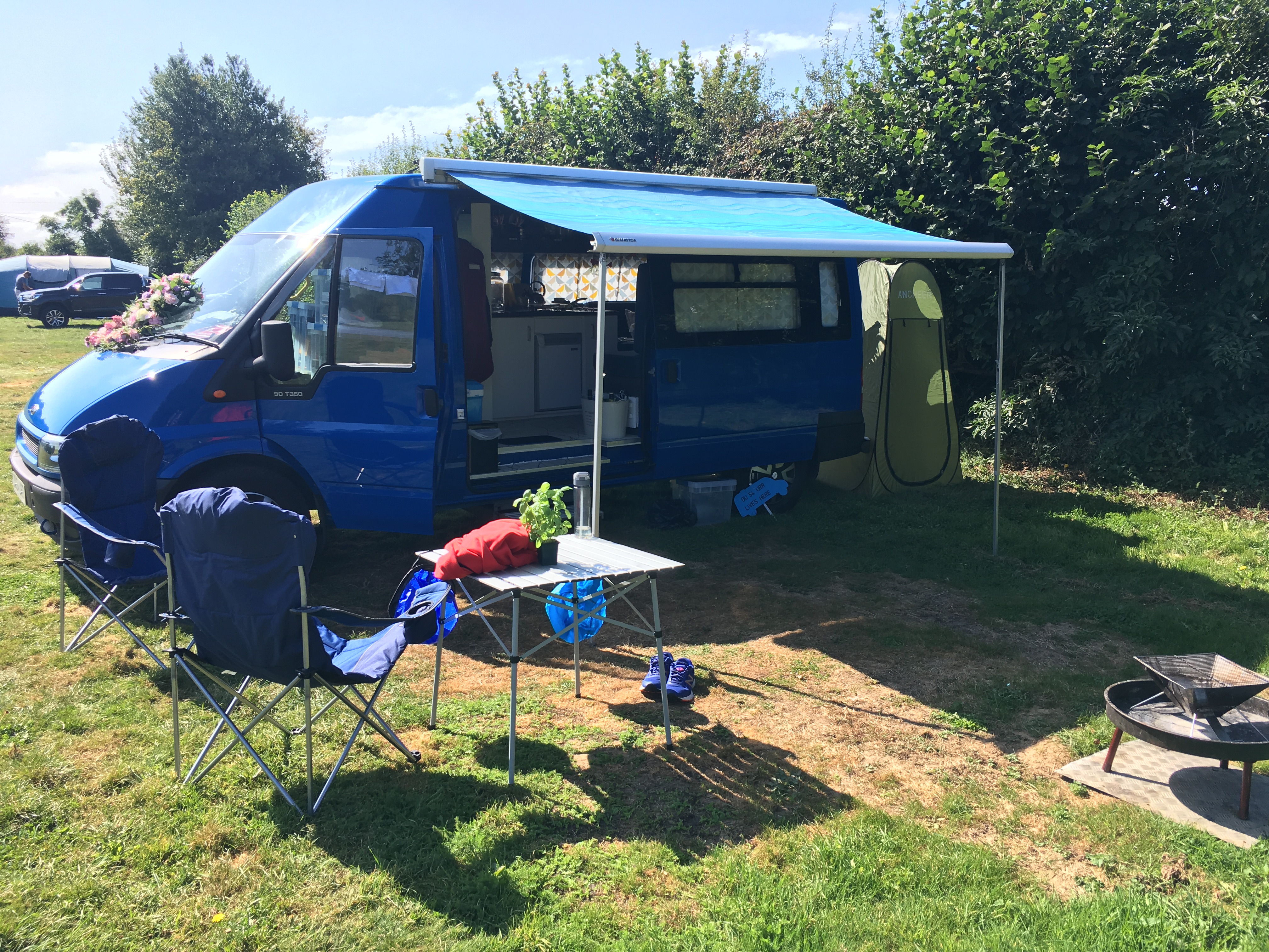 It was then down to Kent for a few days for Steve and Sally’s Wedding. We took the camper and booked into a very quiet and beautifully basic camp site at Stelling Minnis. The village had all the essentials including local store, a proper locals’ pub (yea) and some great walks. On the day of the wedding, which was beautiful, we parked the van in the hotel car park and used that as a base… somehow it got decorated for the occasion…perfect!