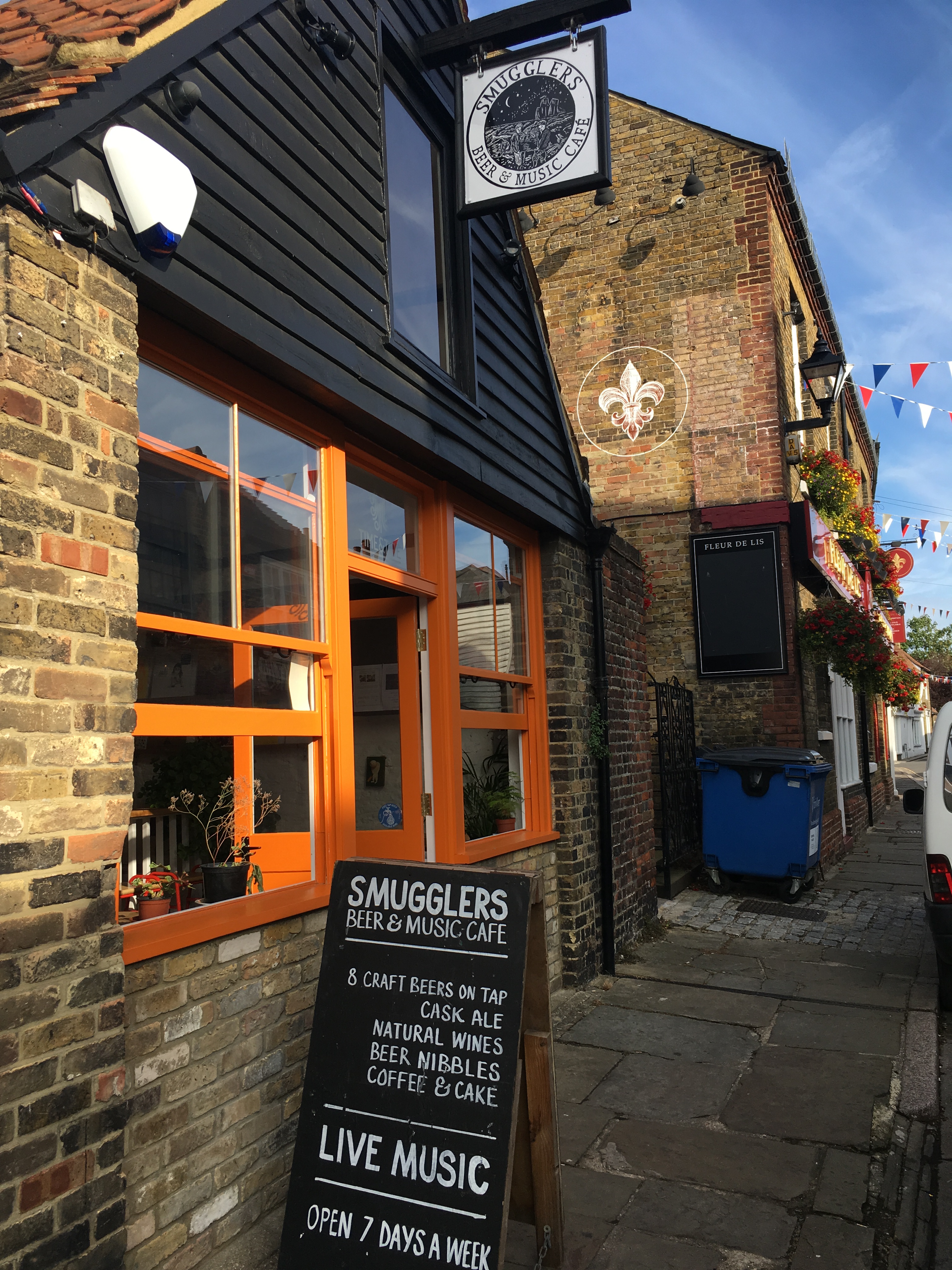 We had no reason to rush back to London so headed to the Kent coast and Sandwich, one of the historic Cinque Ports. The town is full of character and quite a few pubs 🙂 all of which looked very inviting. The weather wasn’t great so we popped into one of the pubs at lunchtime – just for shelter you understand – and before a pint had passed my lips we’d booked a camp site very close to the centre and decided to stay for the night. Van pitched and the weather improving we explored the town (pubs); the Smugglers Beer and Music Cafe was a particular favourite; couldn’t leave without buying some vinyl :-). We ended the day with a lovely meal at My Thai.. great atmosphere and all freshly prepared food.. yum yum!