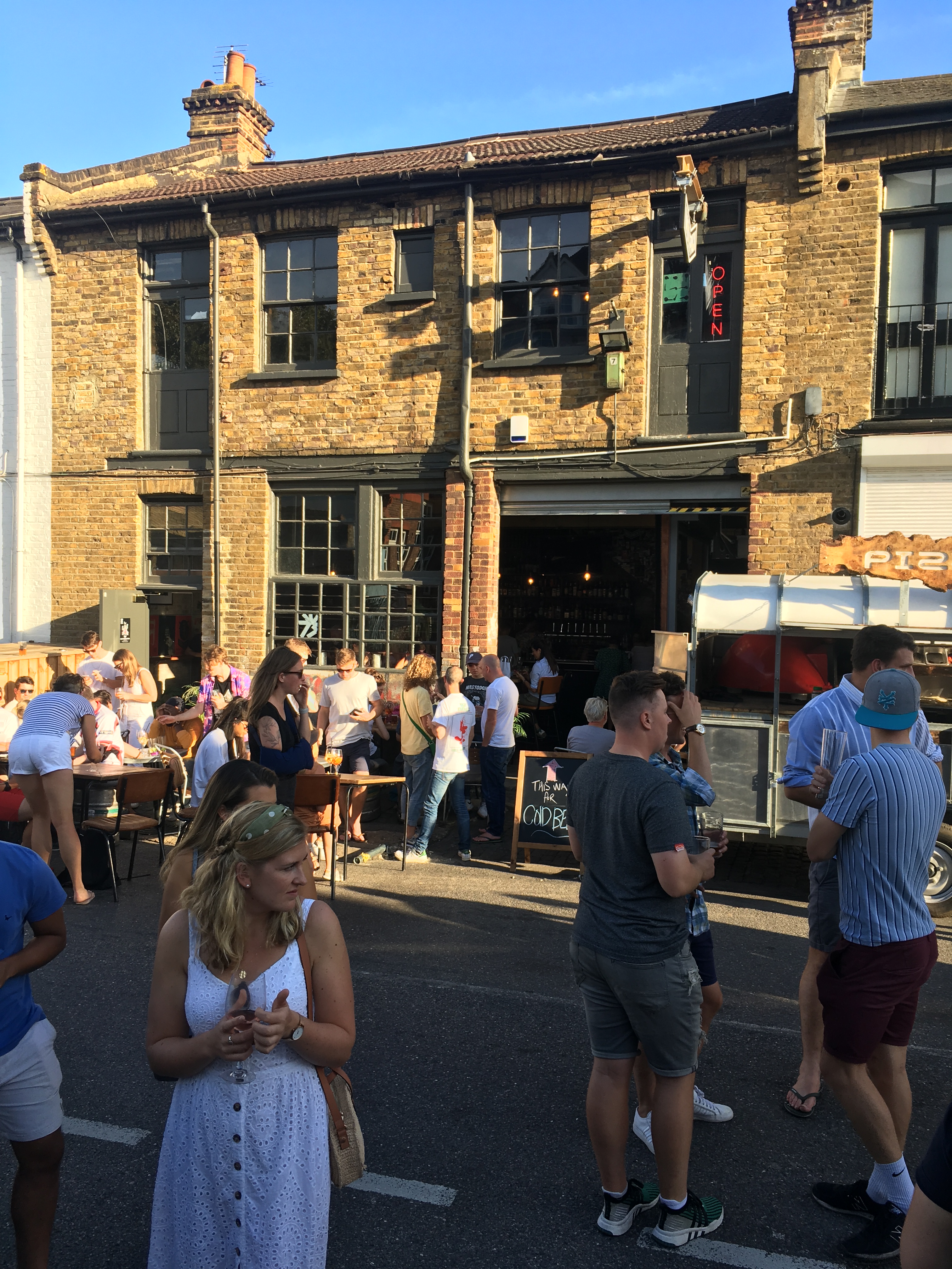… and so we went in search of the Wolfpack pub, home to the Wolfpack brewery / beer owned by two ex-Saracens players. Follow them at #wolfpacklager on Instagram – very funny. The great beer and cool vibe spill onto the pseudo industrial Lombard Street with has other independent bars, cafe’s and restaurants further down. It is a really cool find tucked away off Queens Park main street. The Wolfpack has a great rugby philosophy when it comes to behaviour and responsible drinking.. the sign above the bar says “Don’t be a dickhead”… nuff said 🏉 👍🏻. Oh and they had a horse box wood fired pizza oven outside… oops!
