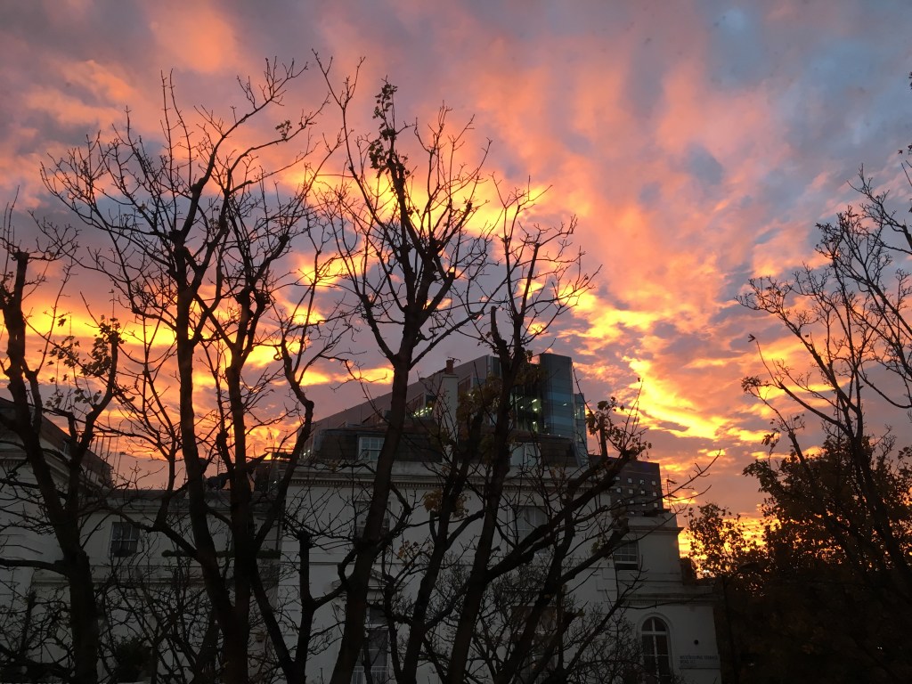 I couldn’t resist this picture of the London skyline taken one early November evening from the flat.