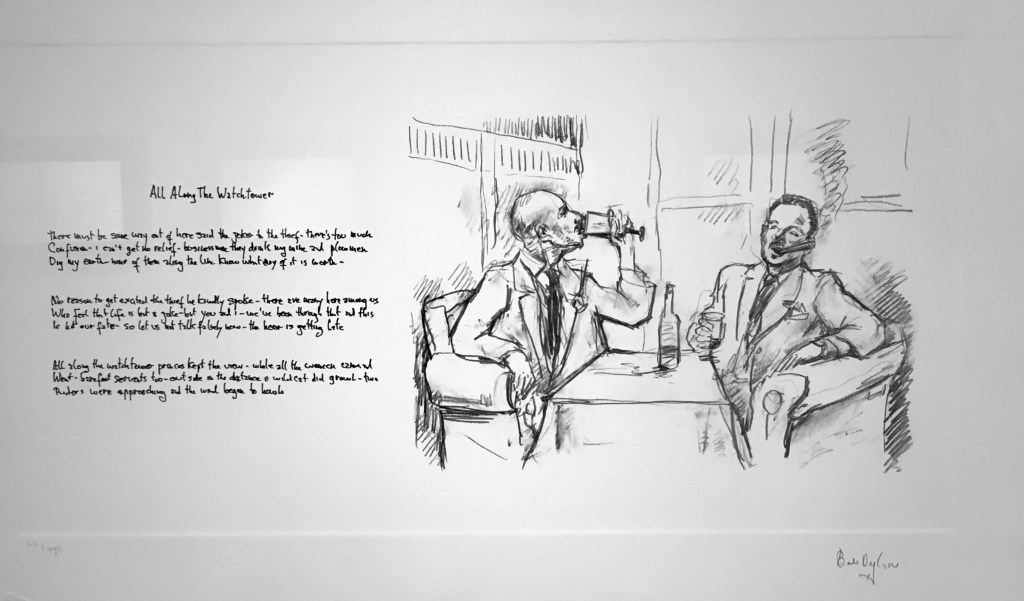 Saturday we hosted some friends at the flat for a Spanish Tapas night. Really great fun and rather a lot of wine was consumed meaning the early start to get to Mondo Scripto, the Bob Dylan exhibition at the Halcyon Gallery was a bit of a rude awakening.