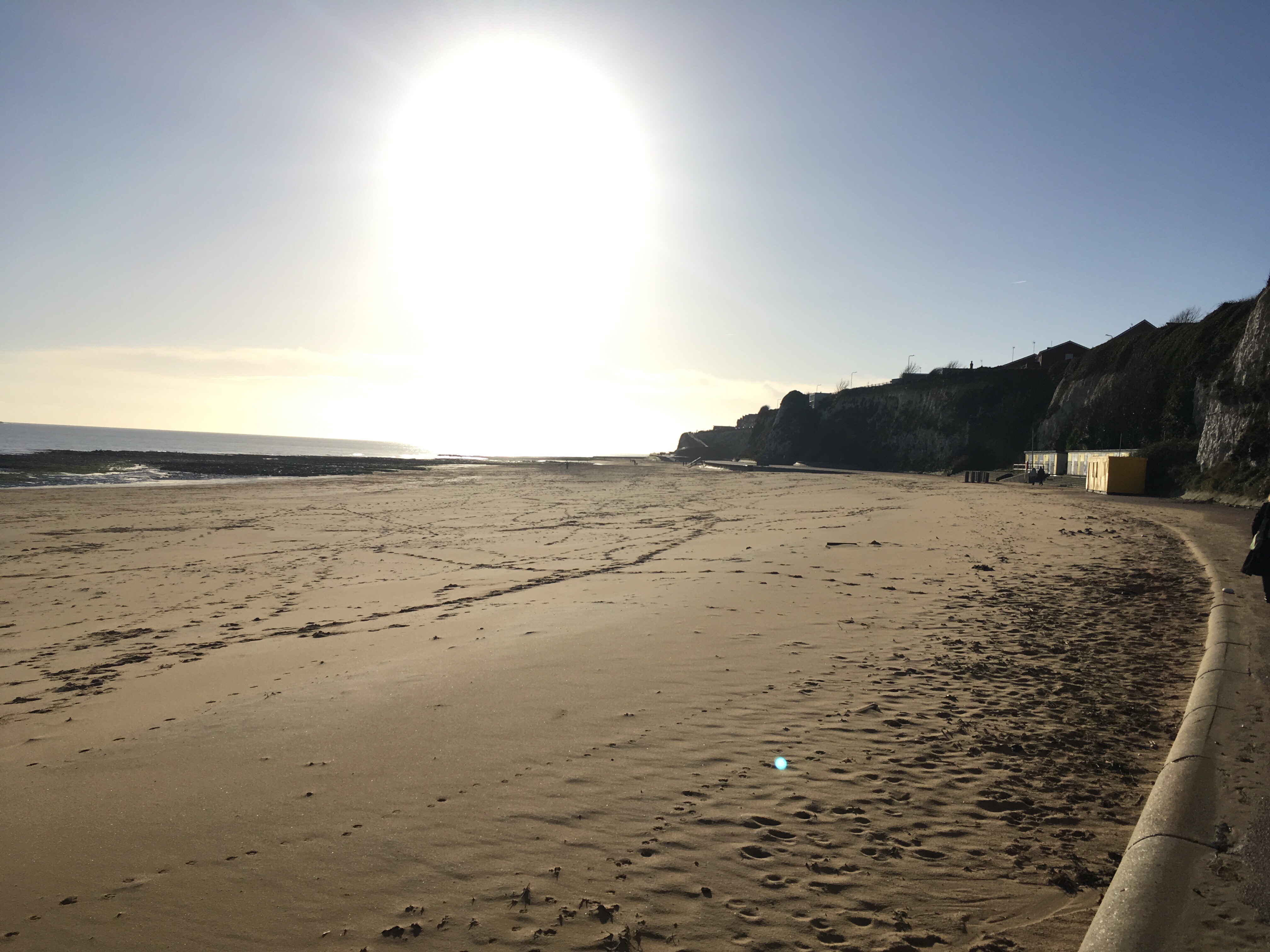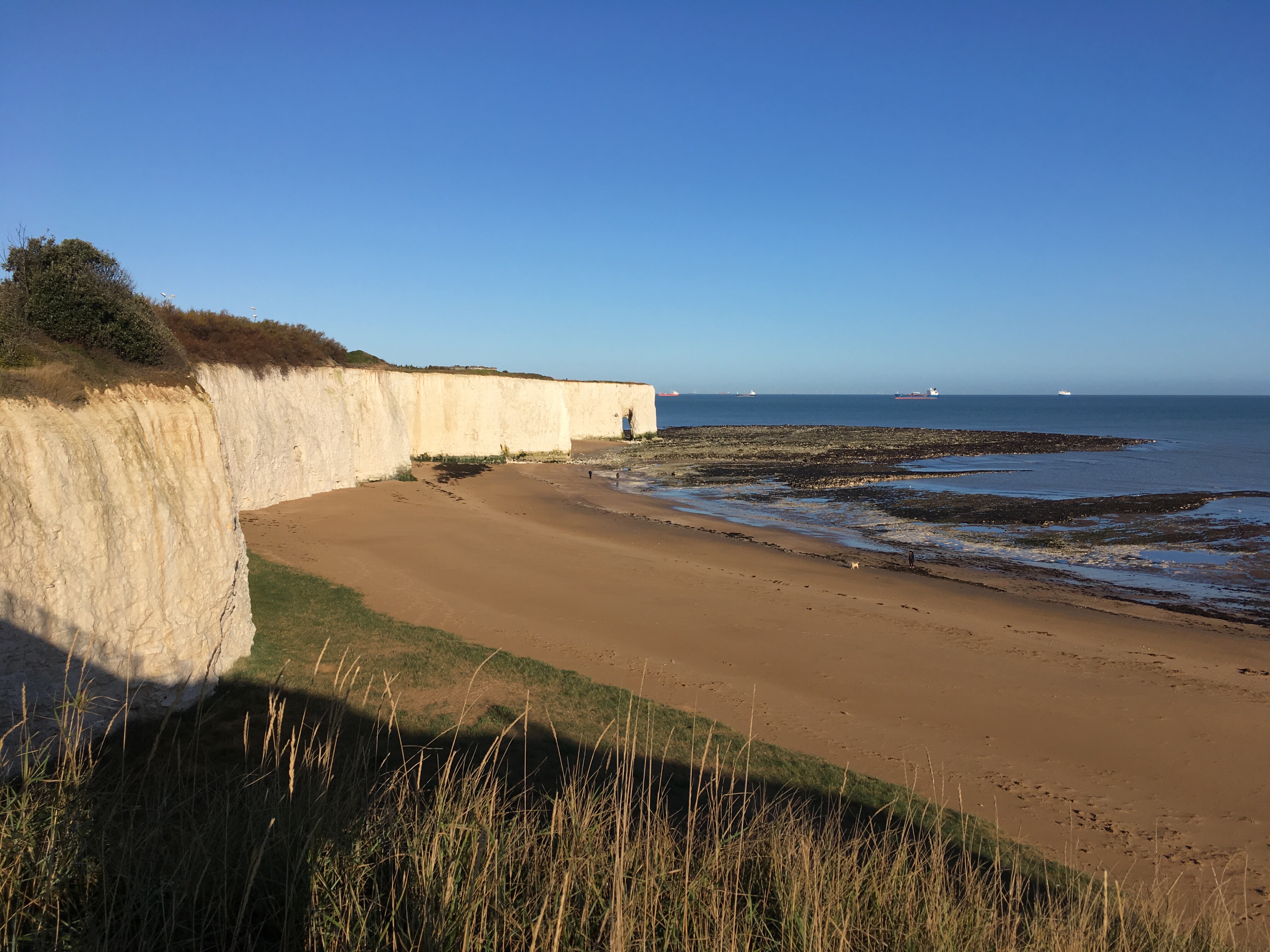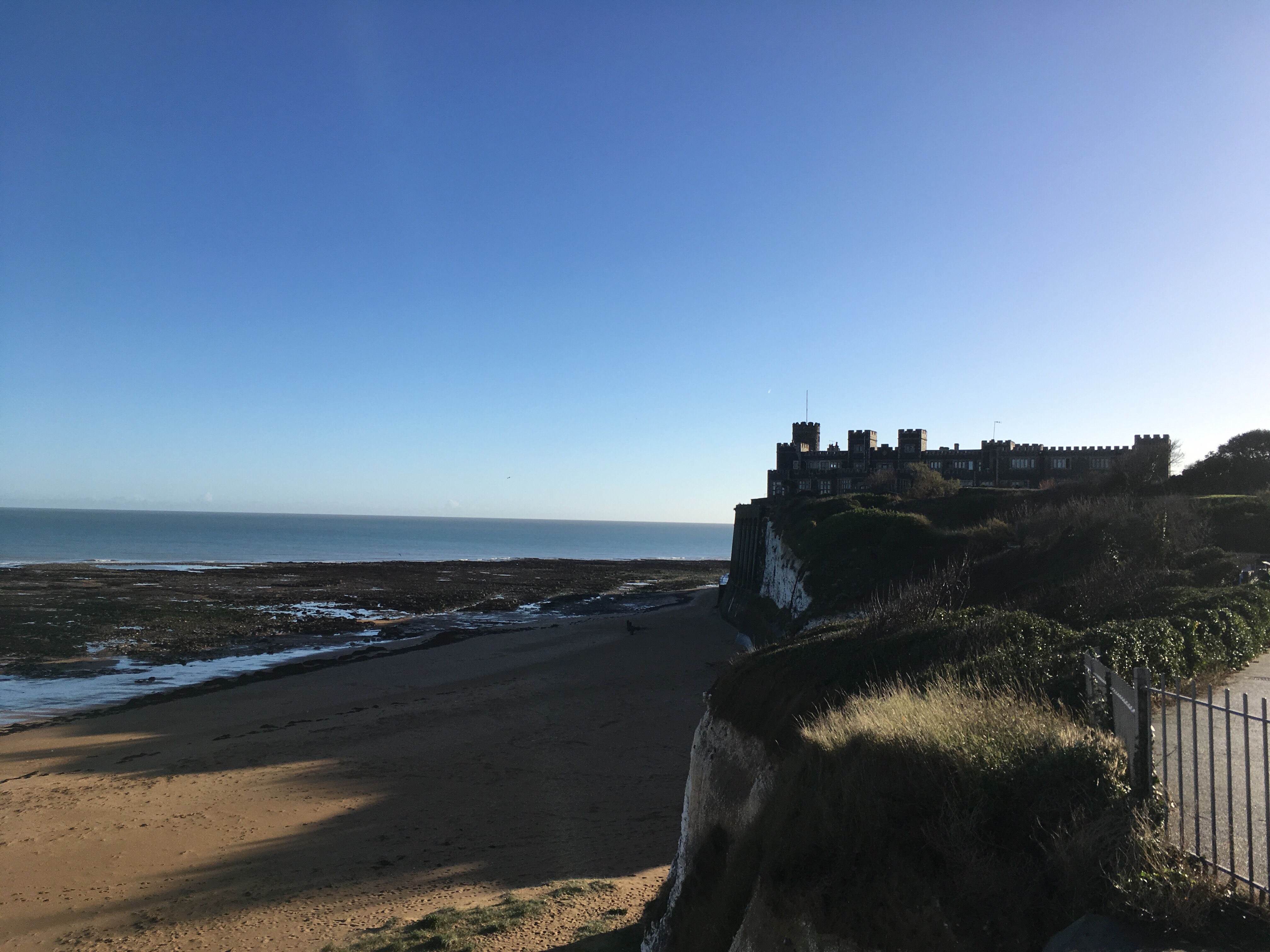 We had a great evening and the following morning the skies were blue and the sea was like a millpond (when we arrived the previous evening it was shedding it down with rain and dark so we couldn’t see anything) so we decided to walk along the coast to Broadstairs Town & Harbour and then back along the beach (as the tide had gone out by then). The weekend overlapped with my birthday; what a lovely way to spend it.