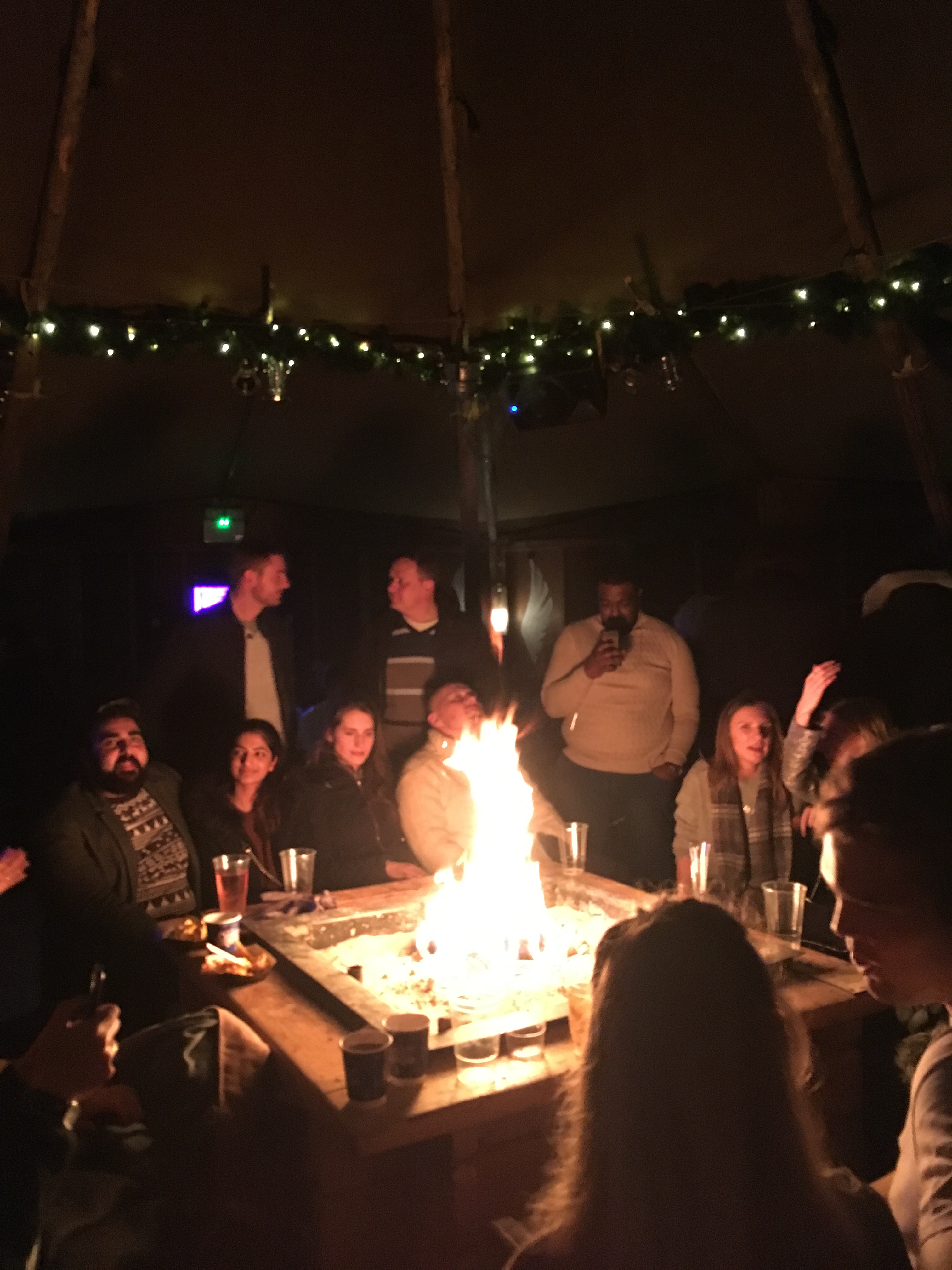 We strolled down to the Winter Wonder Land in Hyde Park one evening. It was mid week and absolutely packed with revellers in the Beer Keller tents with Umpa bands adding to the Christmas spirit. The site is enormous, the rides huge and there are plenty of pit stop bars. Two that particularly grabbed our interest were the ’roundabout bar’ – sit and watch the world go by (about every 3-4 mins) – and the Tipi bar with its brilliant fire pits inside the tent and some great music playing. Winter Wonder Land is well worth visiting.